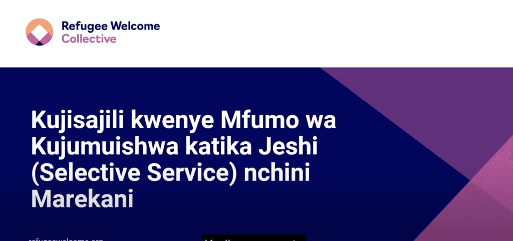This video tutorial, developed by Refugee Welcome Collective, explains what Selective Service is, who is required to register, and shows step-by-step how to register with Selective Service online or by mail. This video is provided in Swahili, Spanish, Pashto, Dari, Burmese, and Arabic.