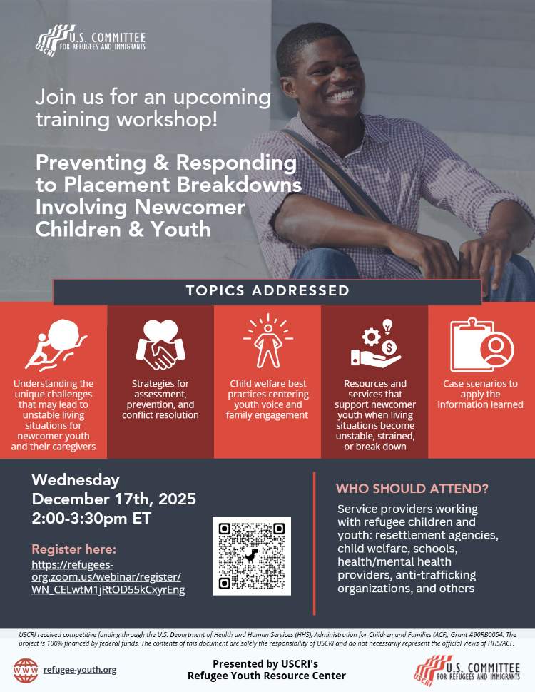 Join us for an upcoming training workshop presented by USCRI’s Refugee Youth Resource Center!