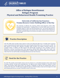 The University of California San Francisco (UCSF) Trauma Recovery Center (TRC) developed and implemented a “building officer of the day” (BOD) system to provide immediate support to clients and staff during office hours. This practice addresses the challenge of meeting urgent, time-sensitive client needs. Preliminary data indicates the BOD system positively impacts the timeliness and…