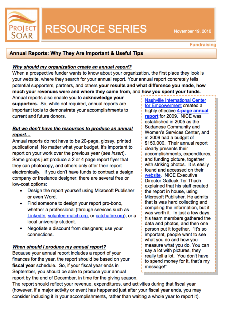 SOAR Tip Sheet - Annual Reports
