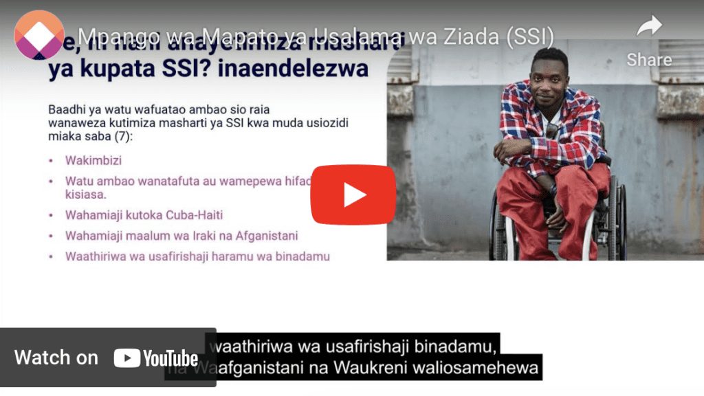 This video tutorial, developed by Refugee Welcome Collective, provides an overview of the Supplemental Security Income program and gives guidance on how to apply. This video is provided in Swahili, Spanish, Pashto, Dari, Burmese, and Arabic.