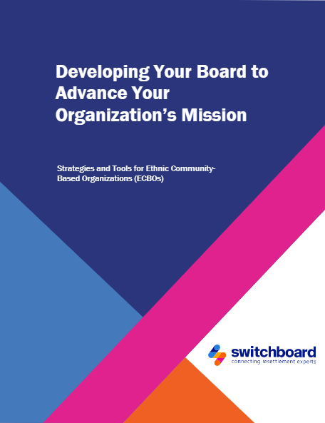 This toolkit aims to guide board members and executive directors on best practices for board development within ethnic community-based organizations (ECBOs), including those who take part in the Ethnic Community Self-Help (ECSH) Program. This document addresses the topics of board responsibilities, recruitment, new member orientation, diversity, fundraising, and conflicts of interest. The toolkit is primarily designed for ECBO board members and executive directors, and partially for senior development staff; it includes strategies and tools to use to build an effective, engaged board.