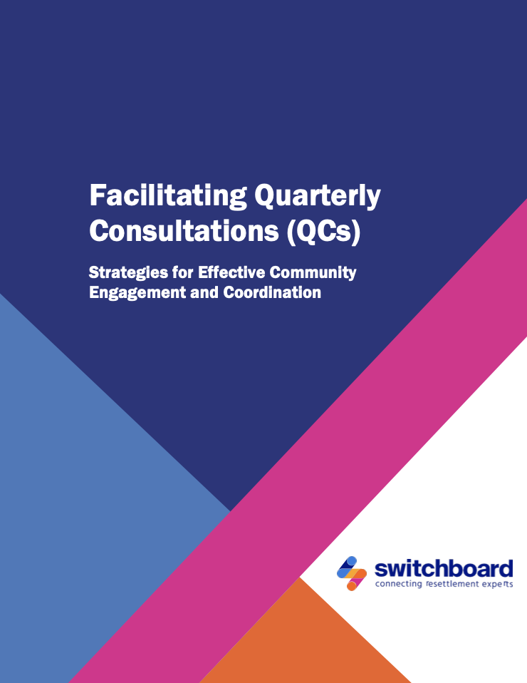 Switchboard has developed this toolkit in partnership with the Migration Policy Institute (MPI) to support public and private sector stakeholders involved in resettlement with conducting effective quarterly consultations (QCs). Those stakeholders include State Refugee Coordinators (SRCs), State Refugee Health Coordinators (SRHCs), national and local resettlement agency (RA) staff, ethnic community-based organizations (ECBOs), and others. After reading this toolkit, you will be able to: