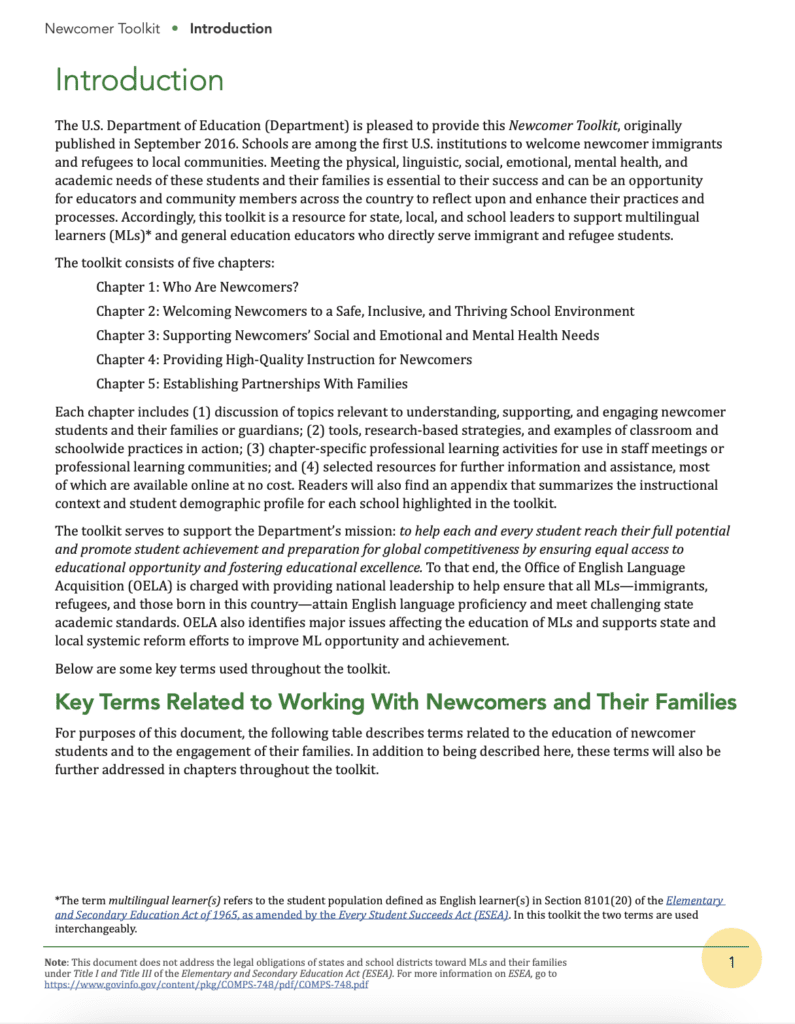 This toolkit, developed by the National Clearinghouse for English Language Acquisition, supports schools in creating a welcoming environment for newcomer students.