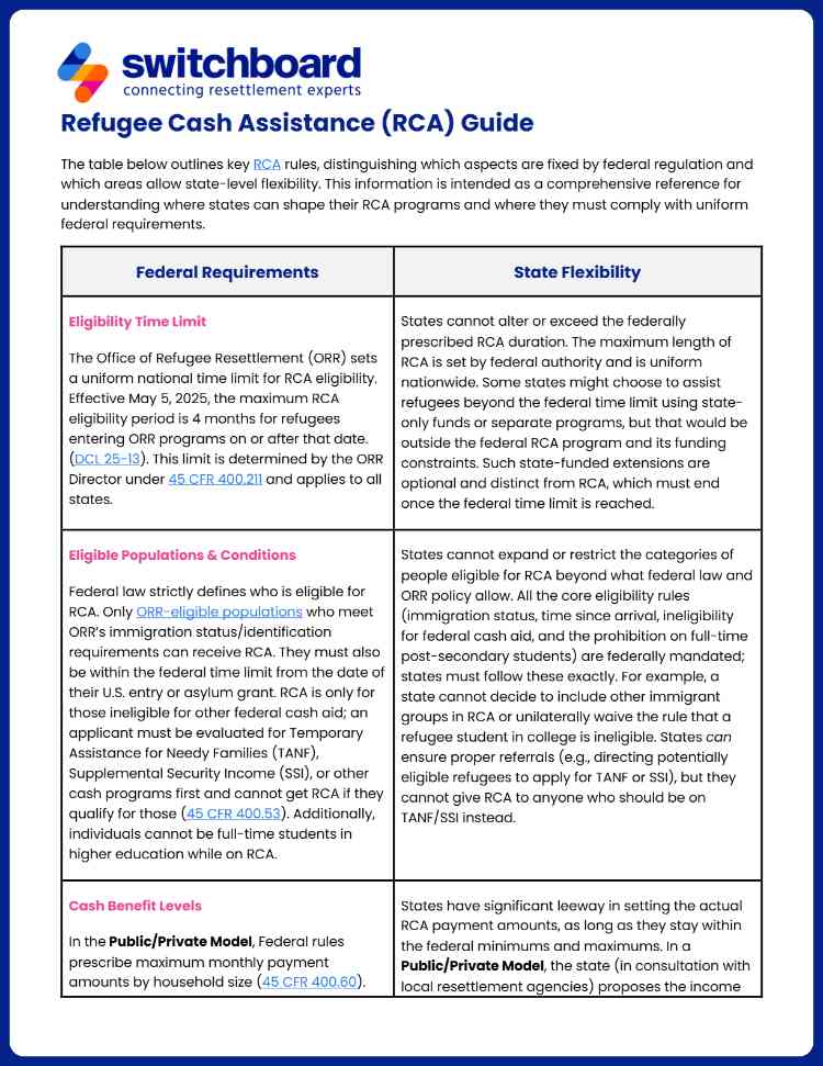This guide outlines key RCA rules, distinguishing which aspects are fixed by federal regulation and which areas allow state-level flexibility. This information is intended as a comprehensive reference for understanding where states can shape their RCA programs and where they must comply with uniform federal requirements.