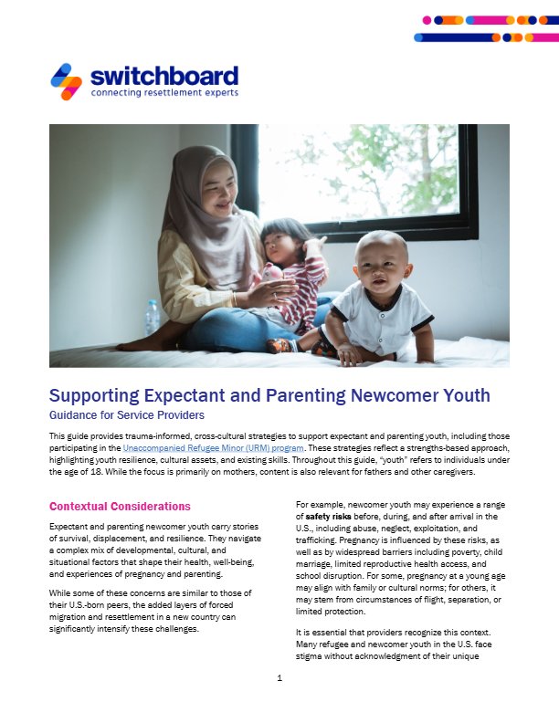 This guide provides trauma-informed, cross-cultural strategies to support expectant and parenting youth, including those participating in the Unaccompanied Refugee Minor (URM) program. These strategies reflect a strengths-based approach, highlighting youth resilience, cultural assets, and existing skills. Throughout this guide, “youth” refers to individuals under the age of 18. While the focus is primarily on mothers, content is also relevant for fathers and other caregivers.
