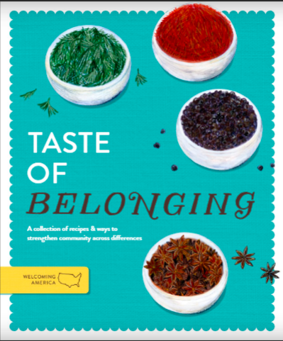 Created as a toolkit and resource guide, the cookbook is intended for individuals and organizations seeking fresh inspiration and tips for building connections and decreasing prejudice in communities. Recipes were submitted by members, staff, and friends of the Welcoming Network, which comprises more than 200 nonprofit organizations and local governments. Each recipe is accompanied by a story of family, community, or heritage. In between recipes, theories and models of intergroup bridging best practices — or ways to strengthen community across ethnic, geographic, or other differences — are presented as Toolkits for readers to put theory into practice. Readers are encouraged to try making dishes from the recipes and sharing the results on social media through the hashtag #TasteOfBelonging. A communications Toolkitkit is available for anyone to use in promoting and sharing the cookbook.